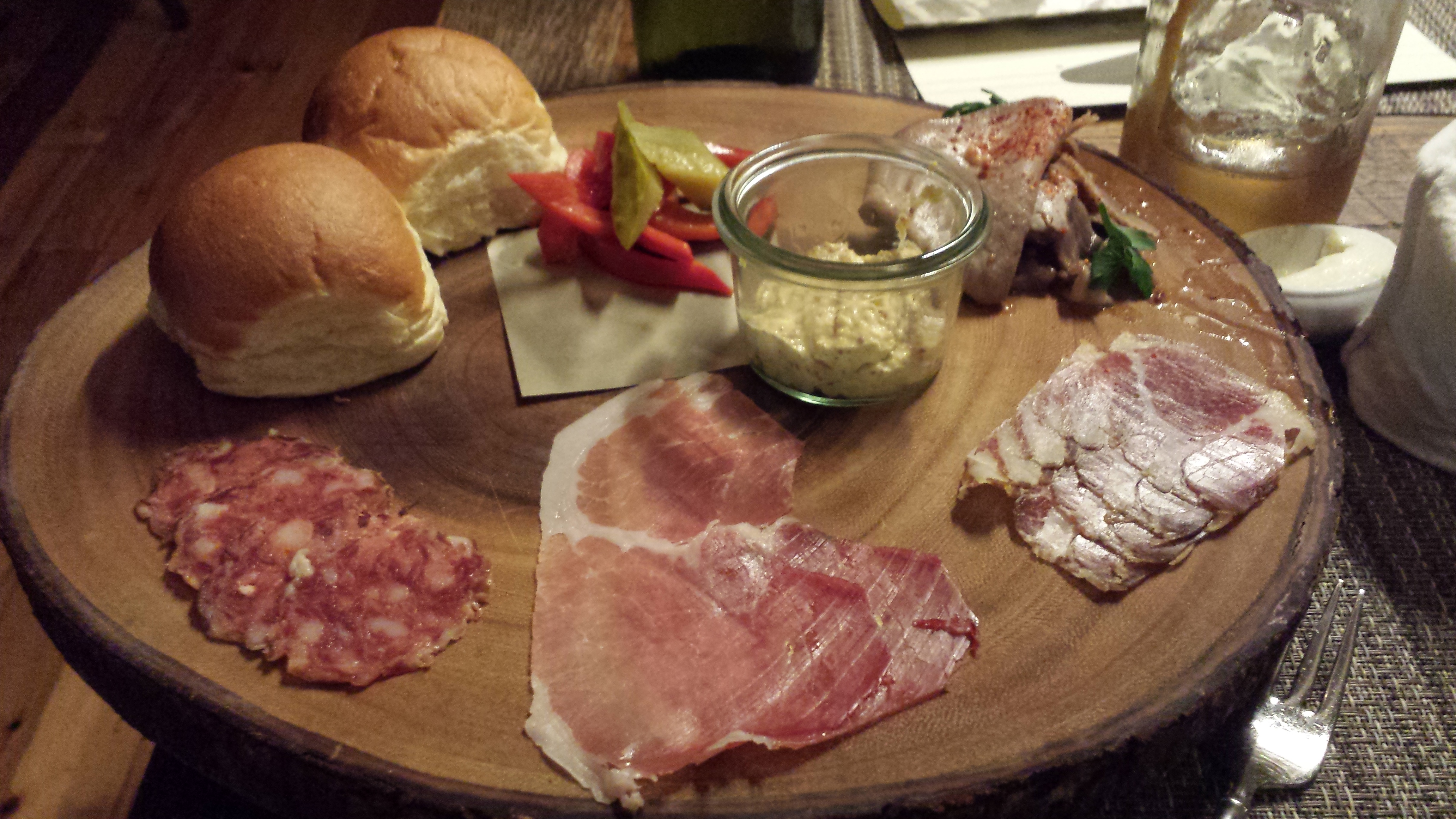 At some point, I opted for the Charcuterie Plate to start off. I have to be honest, it was a tough choice because I was sorely tempted by the fried chicken skins, the beef tartare, the cornmeal porridge, the marrow, the oysters, and the pig tails. Damn. That was a tough decision.