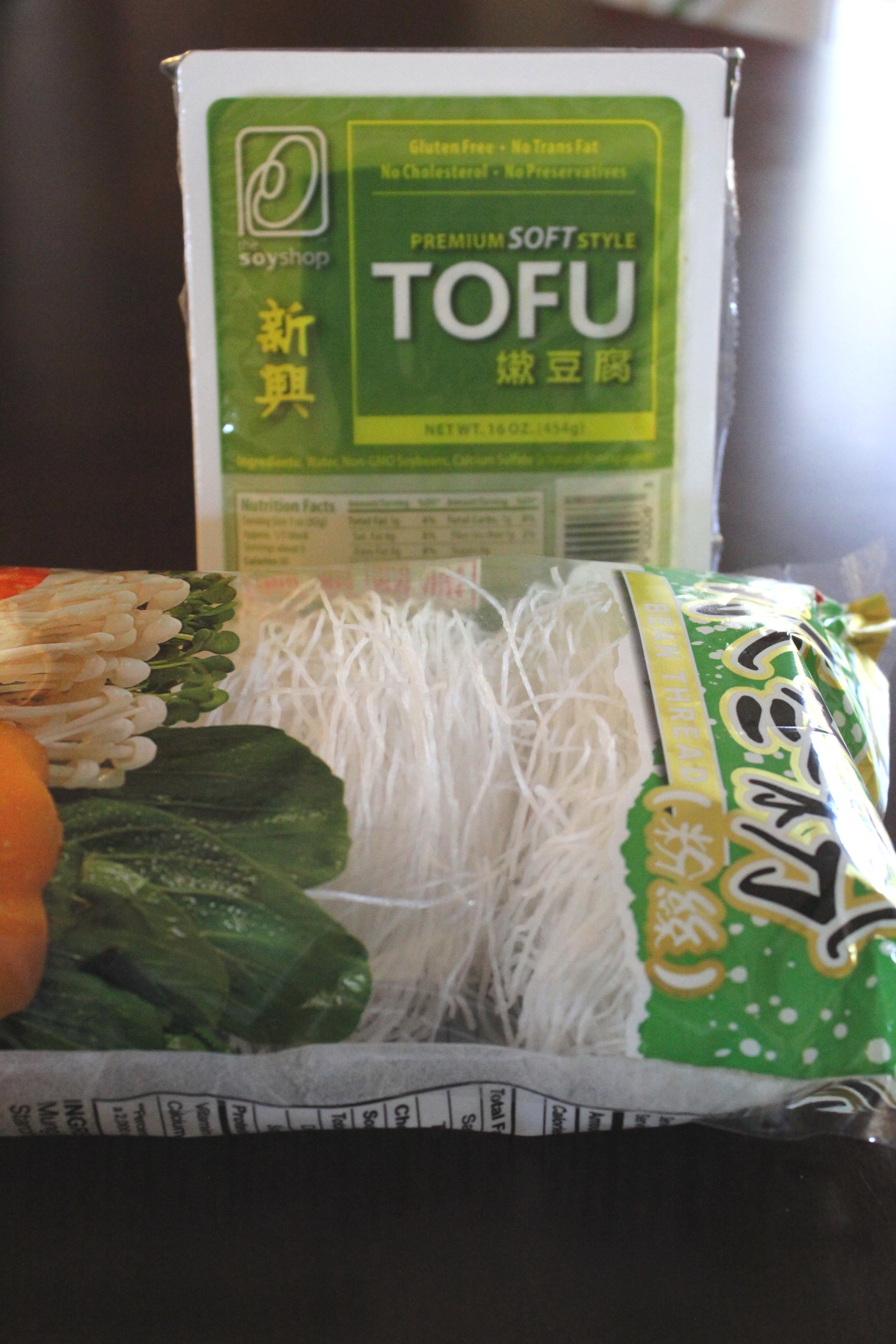 Prepared noodles–bean threads are great in this–please review our discussion of all things Asian noodle