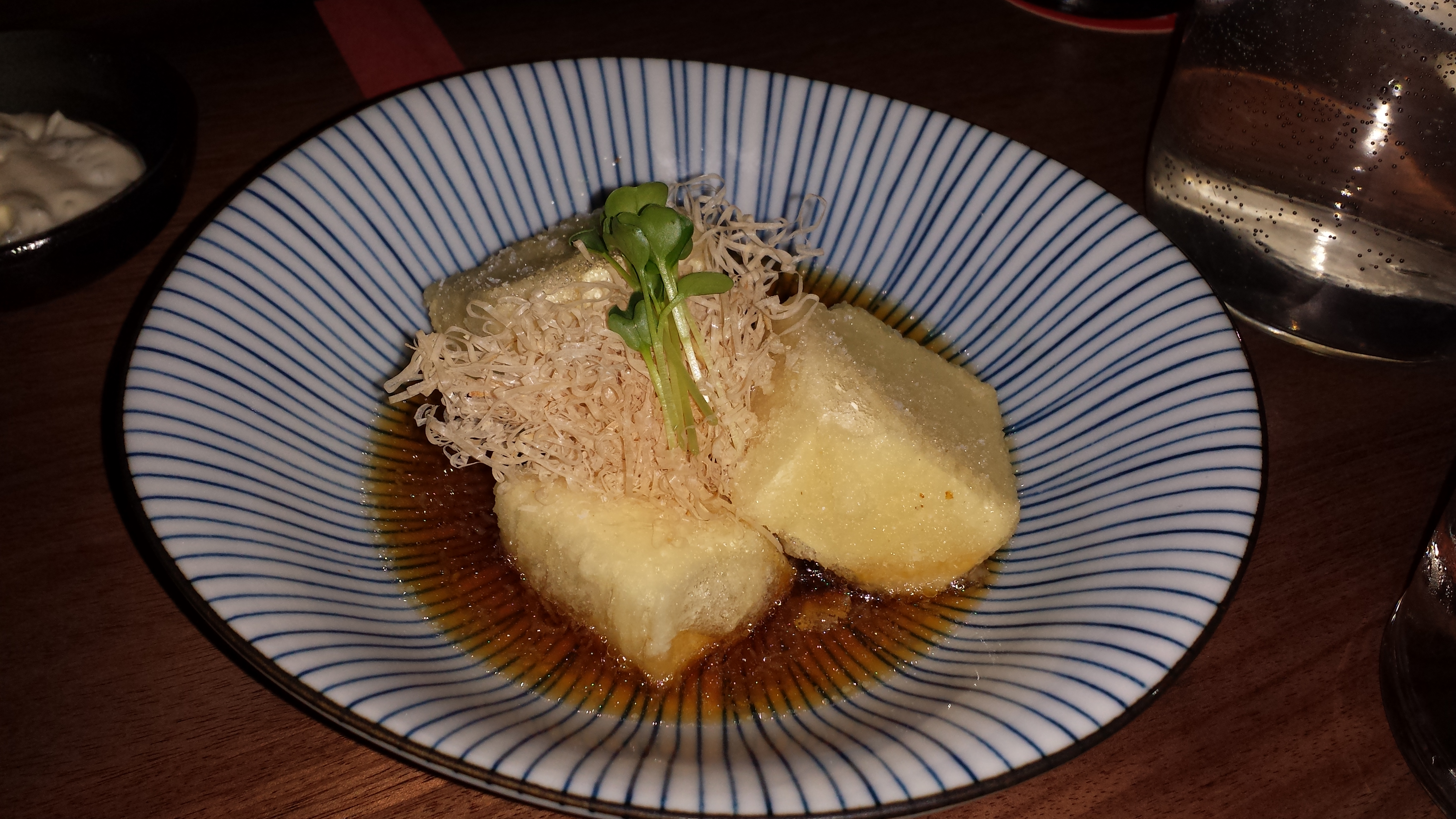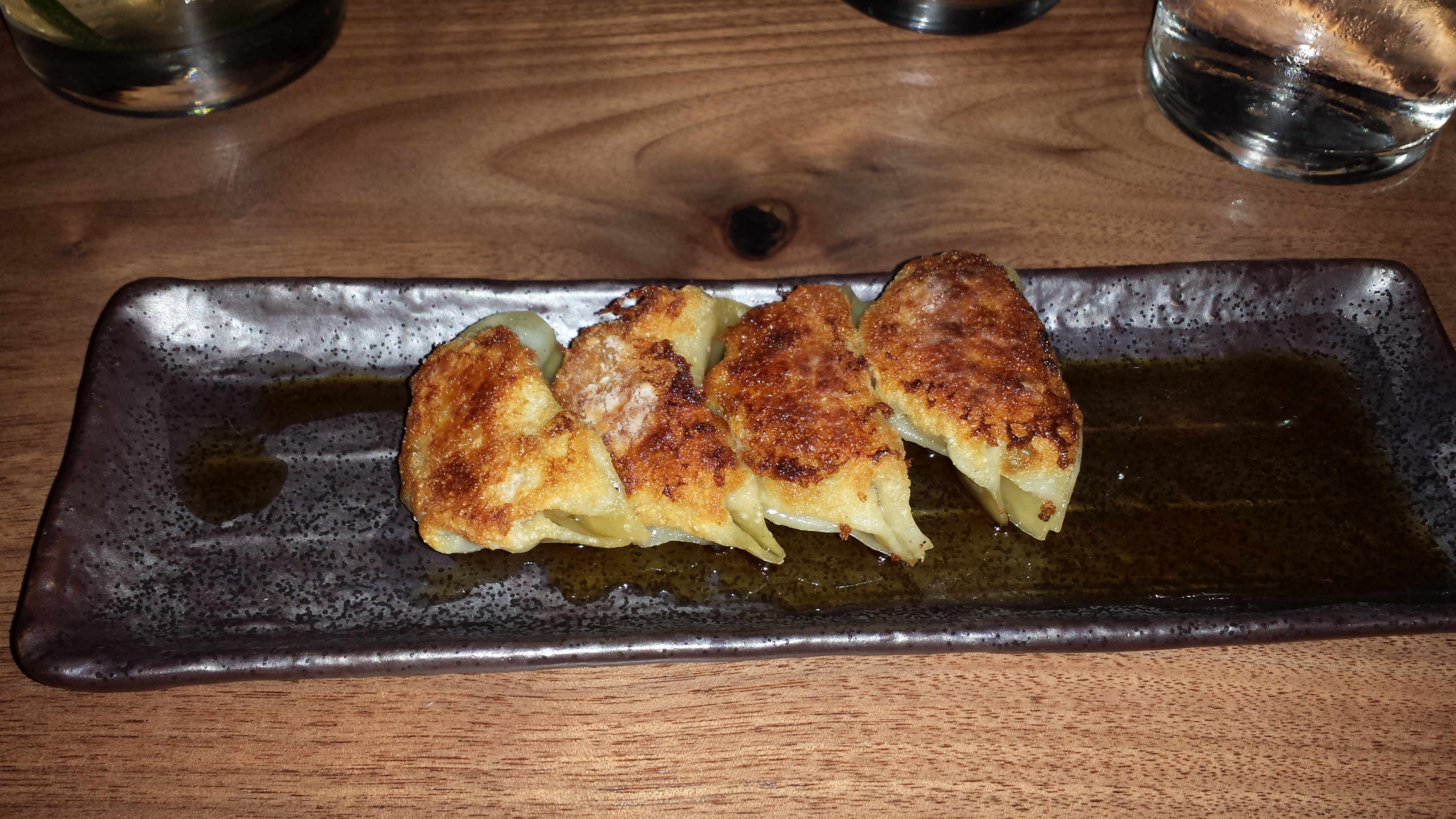 Yes, so the Takoyaki and Brussells sprouts got left behind. That’s ok. Here’s the deal. The tofu is great, but you’re going to have to distract your fellow patrons if you want to stand a chance to eat from the plate and get every morsel off. The dumplings were freaking perfect. And I would recommend getting a couple of orders, because ours didn’t last long. The Wagyu beef is tender, delicious and may be still mooing if you listen carefully. And the fries. I didn’t order the fries. I didn’t ask for them. But I’ll be damned if they aren’t delicious. They are like deep-fried mashed potato spears served with an amazing sauce. You’re damn right we ordered more. (and some more dumplings)