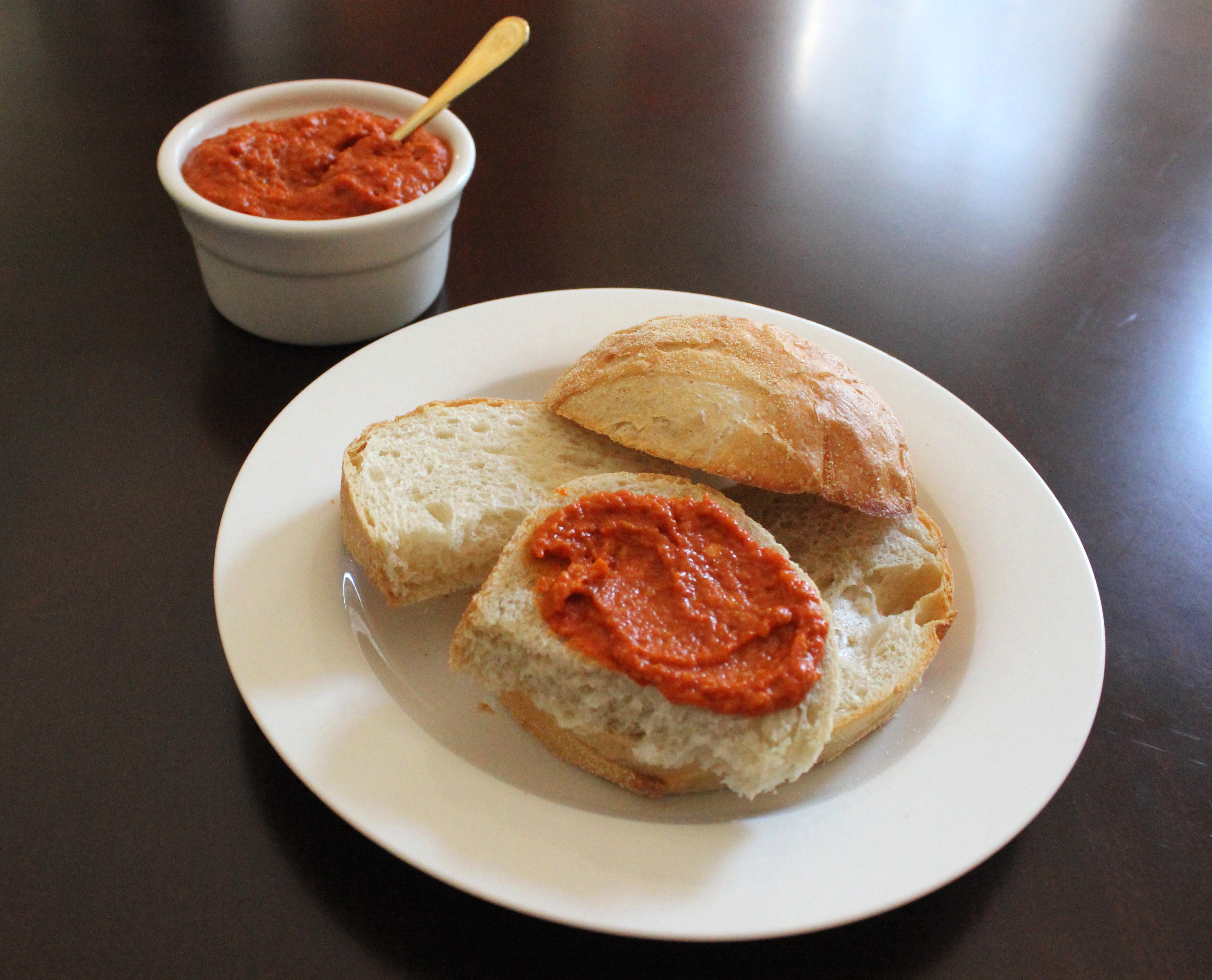 Romesco Sauce–red peppers, almonds, garlic, etc.